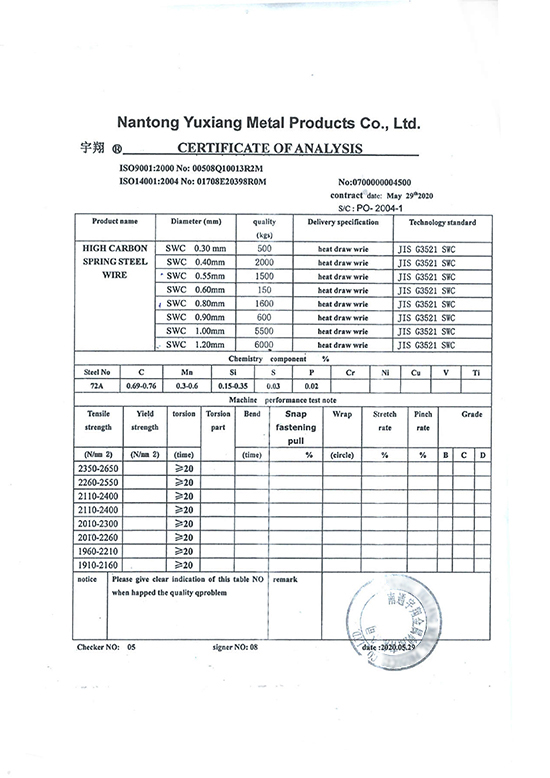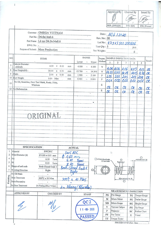 Chứng nhận phân tích lò xo: