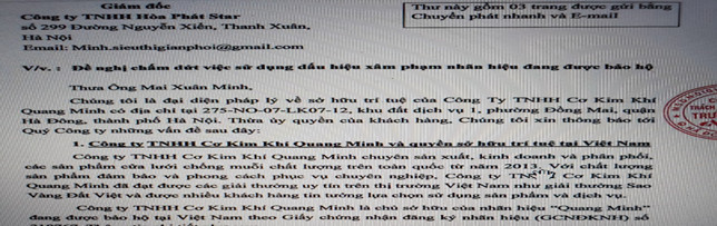 Với mẫu này, công ty Hòa Phát Star (trên hóa đơn mua hàng và phiếu thu tiền), đã đạo nhái, sao chép 100% biên dạng, kiểu dáng và bắt đầu sản xuất bán hàng khoảng nửa cuối năm 2018. Hiện tại, trên thị trường, chỉ có sản phẩm của QUANG MINH có kiểu dáng trên. Đối tượng Hòa Phát Star hay HTM đã đạo nhái có biên dạng thiết kế này sản xuất các sản phẩm cửa lưới chống muỗi nhái kiểu dáng của chúng tôi.