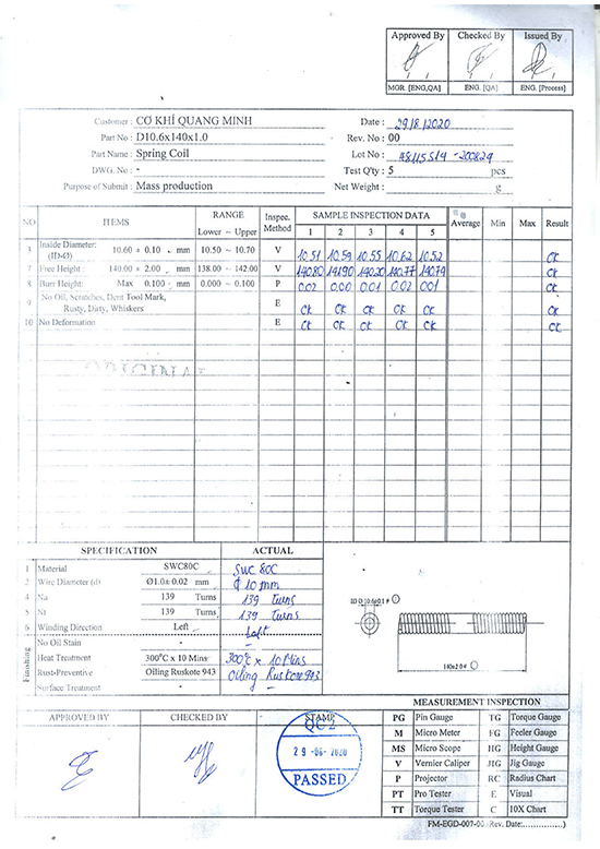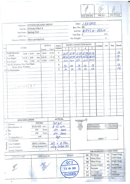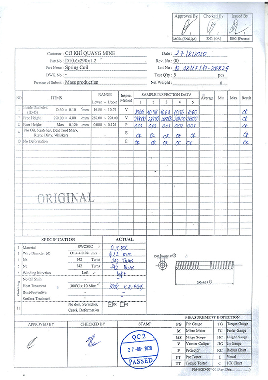 Chứng nhận phân tích lò xo