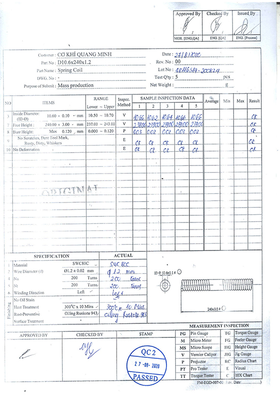 Chứng nhận phân tích lò xo: