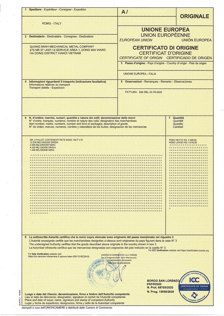 Chứng nhận xuất xứ lưới sợi thủy tinh